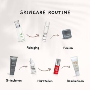 Elk product heeft een uitgebalanceerde samenstelling, van huideigen, hoog gekwalificeerde natuurlijke ingrediënten die gezamenlijk een krachtige werking teweeg brengen. De producten zijn op elkaar afgestemd en zo ontwikkeld, dat het beoogde resultaat vlug zichtbaar wordt. Niet vanuit een laboratorium, maar vanuit de dagelijkse praktijk! Het gaat er beslist niet om, dat u alle producten dient te gebruiken, maar wel die producten die voor het verbeteren en onderhouden van uw huid noodzakelijk zijn.